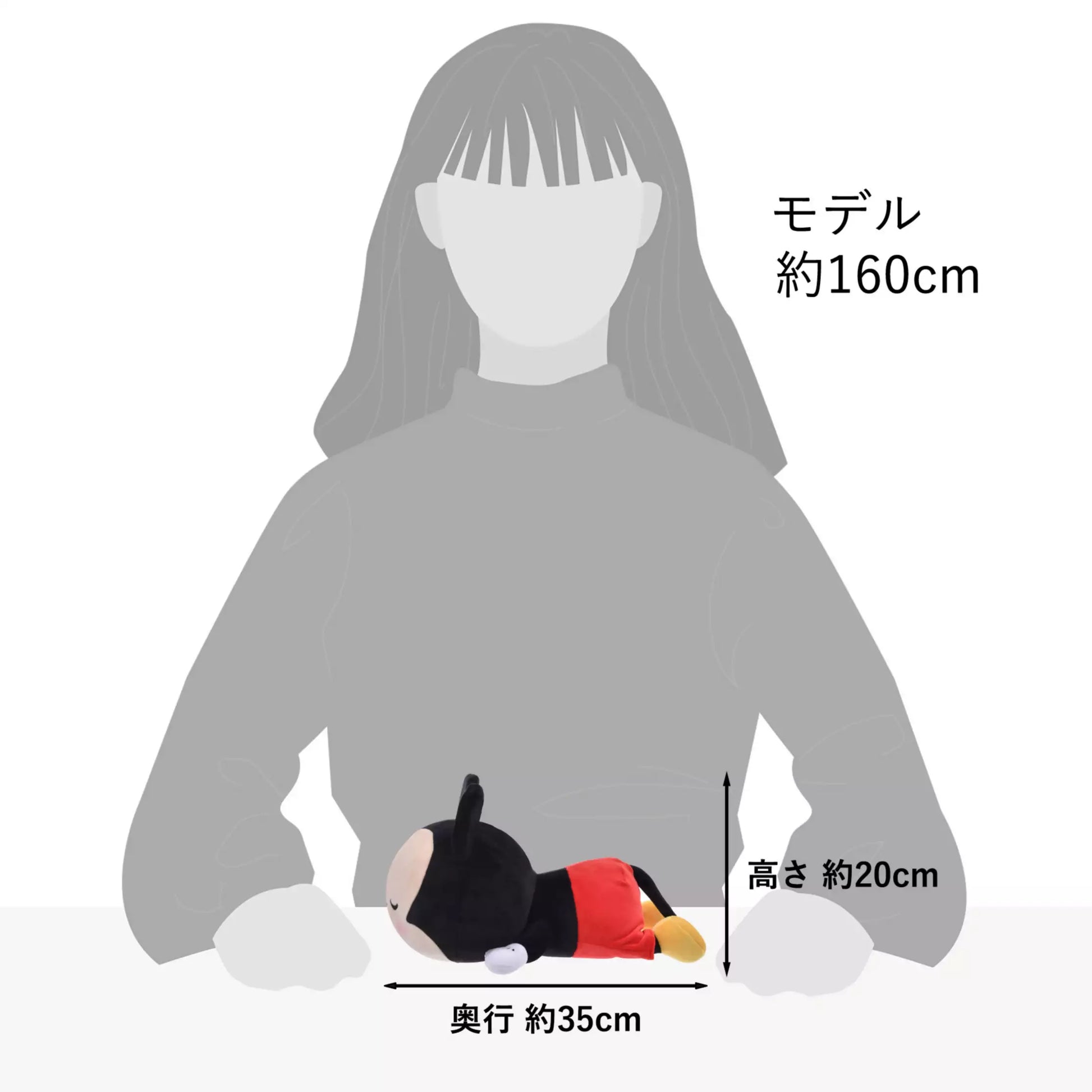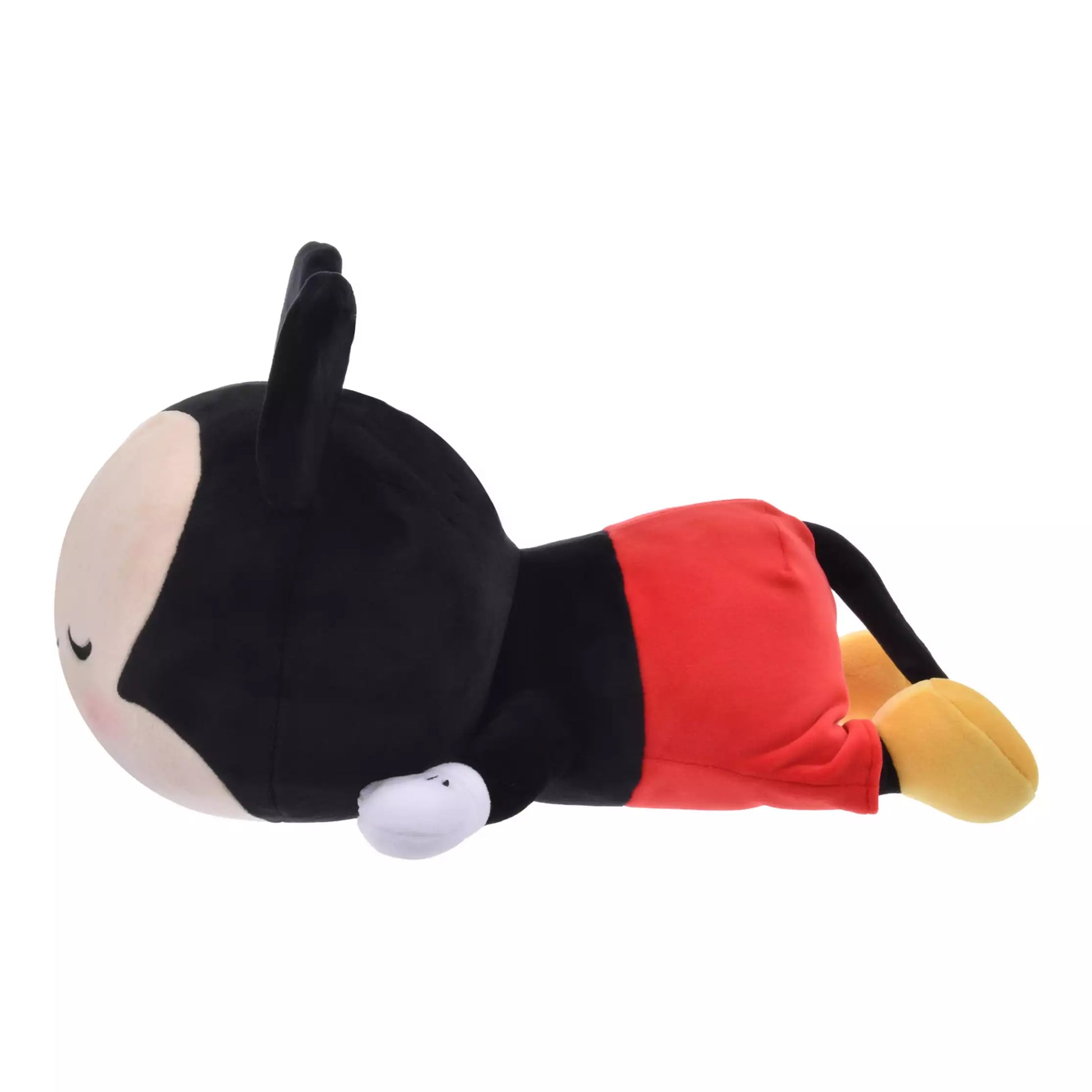 Mickey Mouse is sleeping soundly with his tummy flat on his stomach. You'll be enchanted by his cute sleeping pose and soft, springy texture.