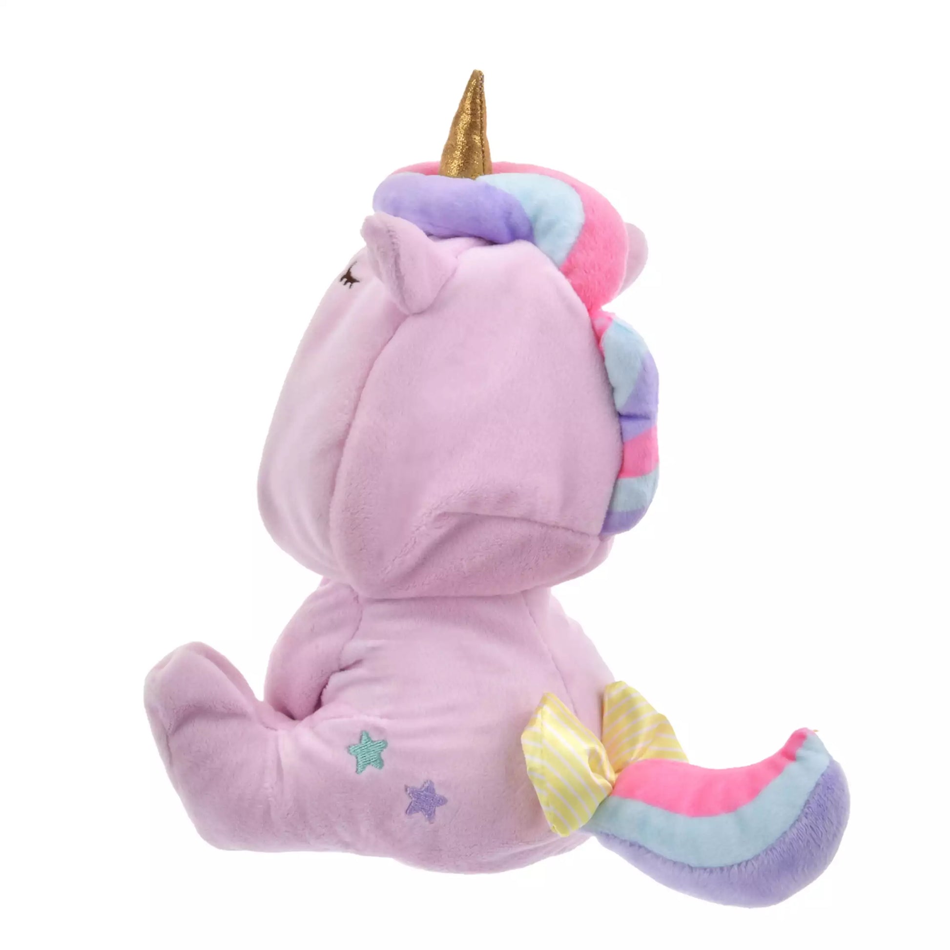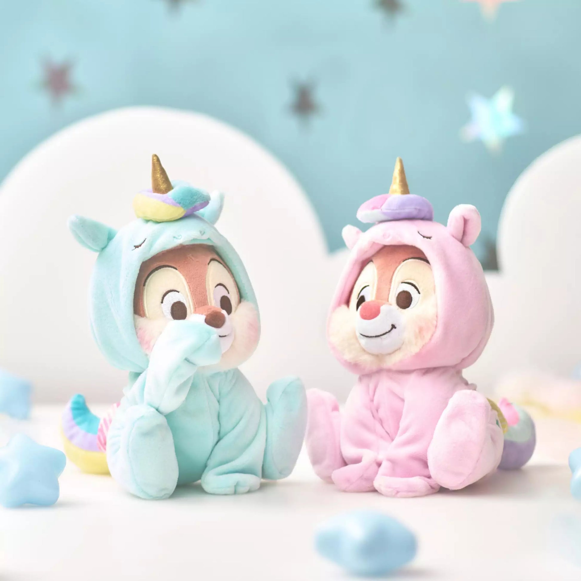 The pastel colored plush toy with a dreamy atmosphere is perfect as an accent for a relaxing space such as a bedroom.