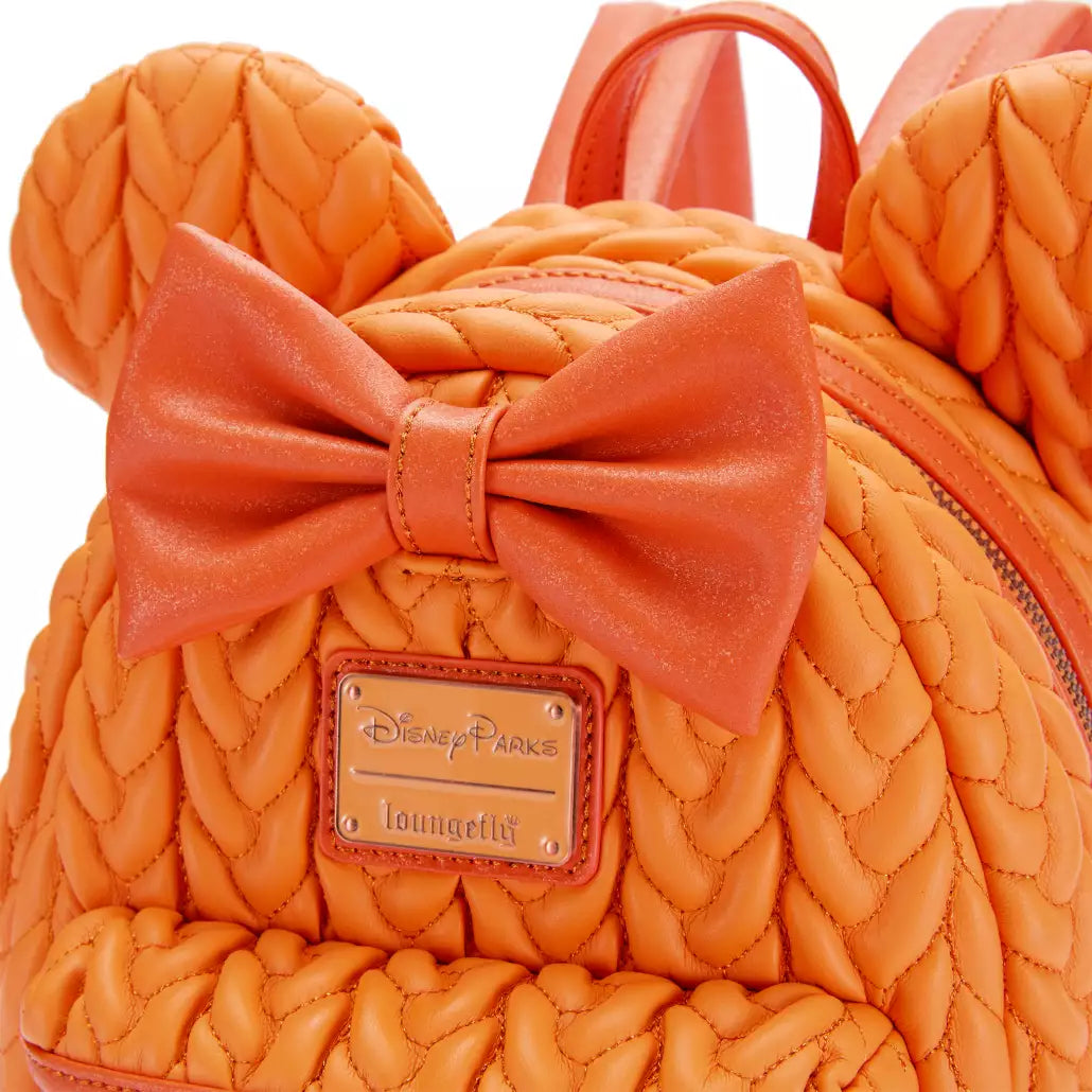 Spice up your style with a dash of autumn magic! This scented Loungefly mini backpack features a braided pumpkin-orange design, topped with Mickey ears and a sweet bow. Perfectly sized for your adventures, it’s a must-have for Disney fans who live for pumpkin spice and everything nice!
