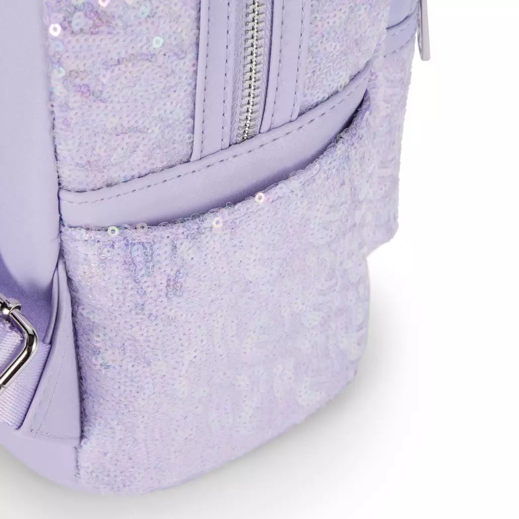 Make every day a sparkling occasion when you're carrying this mini backpack by Loungefly. Dazzling in opalescent sequins and a matching opalescent satin bow, it's a glamorous carryall with its Minnie ears adding character and her always stylish touch. Fun and functional, it's the perfect Disney Parks accessory!