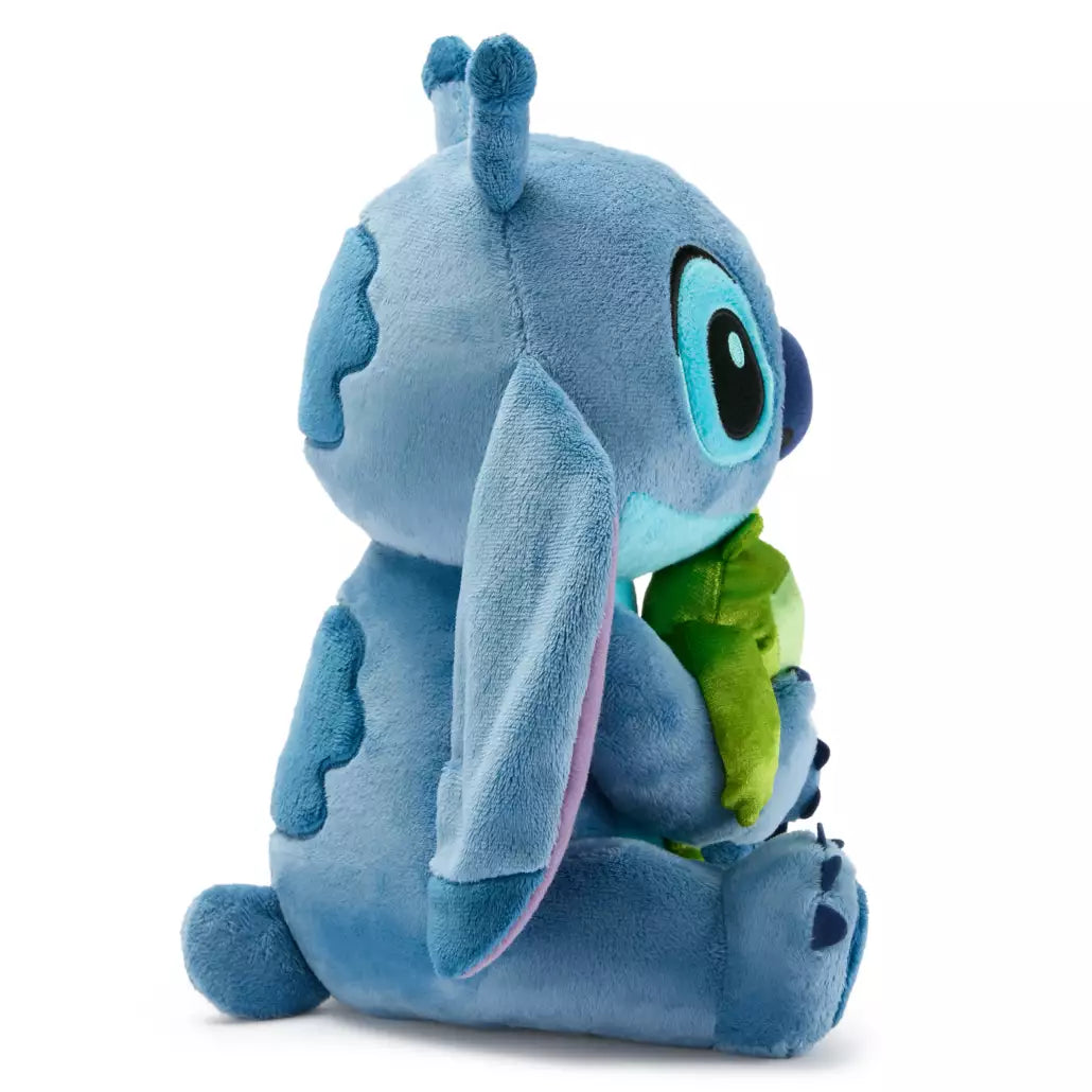 - Stitch is holding a little plush frog