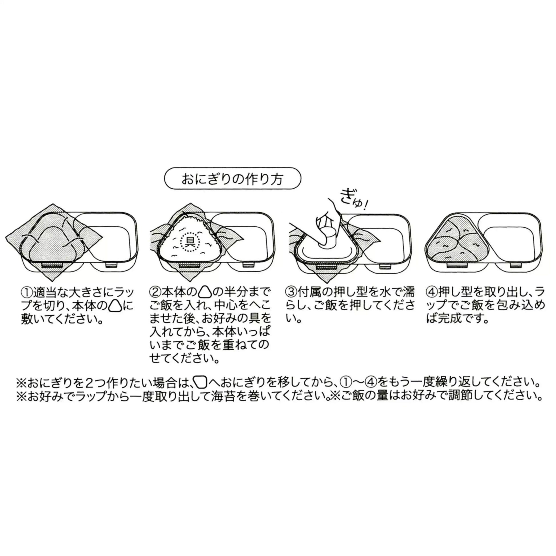 The triangular compartment can be used to make rice balls without having to squeeze them into balls, using the included mold.